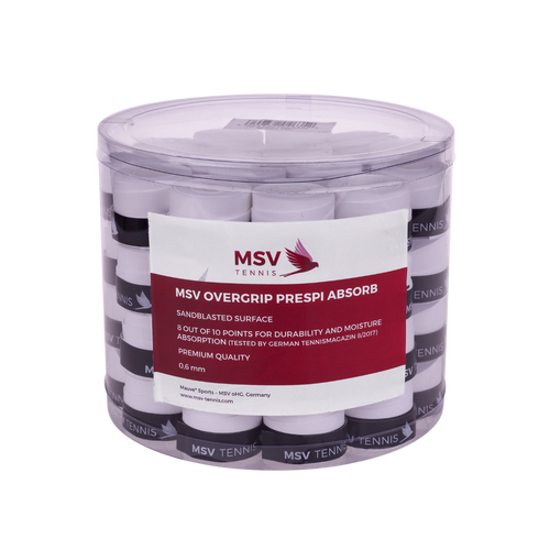 MSV Overgrip Prespi Absorb (cu o suprafață sablata(neteda) ca bine-cunoscutul Tourna Grip) a primit al doilea cel mai mare rating pentru durabilitate și este apreciat pentru absorbția bună a umidității. În ceea ce privește confortul de împachetare, niciun alt overgrip nu a primit o evaluare mai bună.